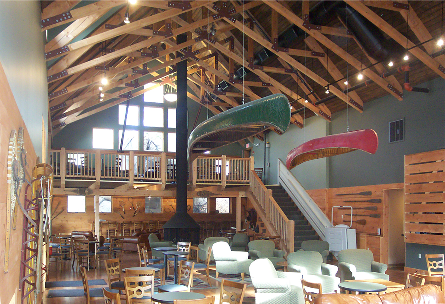 Endicott's Student Community Center is designed to provide large, informal community gatherings and multi-function space for 250 Endicott students, including a large, commercial kitchen. The grand, central hall has a double volume space framed with handmade timber scissor trusses and exposed wood decking. A central hearth provides warmth and a central focus. A large, open floor plan with a mezzanine level, multiple convenience and tel/data ports allows for many different kinds of uses. Nilsson + Associates Architects provided full Architectural Design, Construction Documents and Contract Administration Services for the Student Center. Client Feed-Back “Endicott College has worked with Nilsson Associates on three consecutive projects. Nilsson + Associates Architects has been a vital part of our campus development, they understand what the College is trying to accomplish, they work closely with us to design according to our needs, they are able to manage within the budget restraints. Nilsson Associates works with us through concept, design and construction. They are available to make adjustments along the way. As President of Endicott College; I have been very pleased with Rick and his staff of professionals. They are a creative and talented team whom I feel very lucky to have as a resource.” Dr. Richard E. Wylie, President, Endicott College
